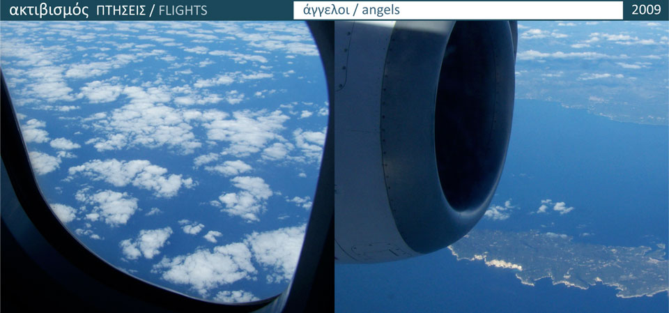 ΑΓΓΕΛΟΙ / HELLINIKA Η ιδέα της ύπαρξης οντοτήτων απροσέγγιστων από τις αισθήσεις, ορισμένων και ενεργών στις περιοχές της μεταφυσικής, η εννόηση του αδύνατου της πλεύσης στον αέρα, της ανόδου, της εξόδου από το σωτήριο αεριώδες περίβλημα του πλανήτη, η ιδέα που αναδύεται την στιγμή της ενατένισης του φλοιού, της επιφάνειας, ολόκληρης της σφαιρικής κατοικίας καθώς περιστρέφεται και διασχίζει τις τροχιες που καθορίζονται από τους συνδυασμούς των βαρυτικών έλξεων, αποτελούν ένα νοηματικό σύστημα μέσα στο οποίο κινείται η ανθρώπινη συνείδηση. Αφήνοντας σημαντικά ή ασθενή ίχνη που καταγράφονται ως στιγμές και λεπτομέρειες της Ιστορίας.