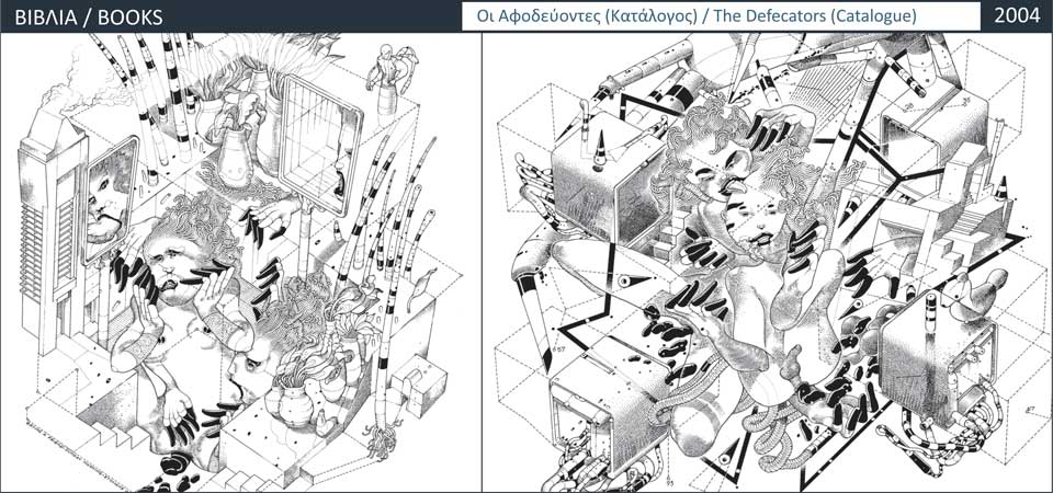 ART / HELLINIKA ...Κάθε χειρονομία που υλικοποιεί έναν ισχυρισμό, ...αυτή η πληροφοριακή πυκνότητα που ονομάζουμε "έργο τέχνης" οφείλει να προκαλεί μια άγρια σωματική αντίδραση, χωρίς να εκτρέπεται σε μακριές, συνεχείς και έντονες κινήσεις των χεριών και του σώματος. Με ένα ελάχιστο μάζεμα των δακτύλων, με ένα κρυφό μάζεμα της γροθιάς μέσα στην τσέπη, με το σκληρό σφίξιμο των δοντιών που κόβουν με ακρίβεια κάθε πιθανότητα ενός βαθιού επιφωνήματος. Το έργο θα πρέπει να τρώει τα μάτια του θεατή, να βυθίζεται και να πονάει τη σκέψη του, να παραμορφώνει κάθε νοηματική σταθερότητα, να τον τσακίζει ... να τον τσακίζει. Να ονομάζει με ακρίβεια όσα θέλει να πει χωρίς έλεος για τον παρατηρητή του, χωρίς καμιά οικονομία στις λέξεις. Το έργο θα πρέπει να θεραπεύει από την αρρώστια των πληθυσμών των πράξεων που ολοκληρώνονται χωρίς να σημαίνουν τίποτε απολύτως, να θεραπεύει τη θλίψη του δημιουργού, που προκαλείται και τον κυριεύει από την ζωή του μέσα σε ένα κόσμο αφόρητης αγριότητας σταθεροποιημένο σε ένα πεδίο θεσμών και κανονικοτήτων με ένα ευτυχισμένο όνομα... Πόσες θηριώδεις κινήσεις και χειρονομίες δεν ξεσκίζουν τα σώματα των αθώων έχοντας τακτικά και τυποποιημένα έγγραφα που αποδεικνύουν την εγκυρότητά τους. ...Κάθε σχέδιο και κάθε σύντομη ιστορία... είναι μια ακραία απόπειρα εικονογράφησης της μεθοδολογίας που χρησιμοποιείται από την προτυποποιημένη εκπαιδευτική διαδικασία του δυτικού σύγχρονου πολιτισμού για τον τρόπο και τις μεθόδους της σκέψης και των ενεργημάτων για τη ζωή.