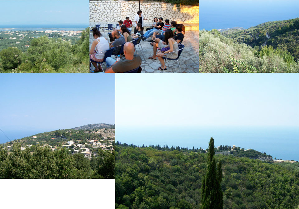 ENGLISH The island seems like the sequence of the inland's surface, without any sea in between to prepare the approaching visitor. Higher, almost at the top, an old building has already opened all its windows to the South. This mountain ship will drift away many young people, guests, unstable discoverers of a life that seems ideal. Life is separated in distinctive pieces. Some of them are getting lost inside the meaning of an angry gesture, others can be described by the body form as it stands still at the horizon. Blue pieces that will flourish and offer a well writen text to the sunset. We travell. We will soon meet in the interior and the courtyard of this stone ship, the asylum that will protect our lives for a period of time.