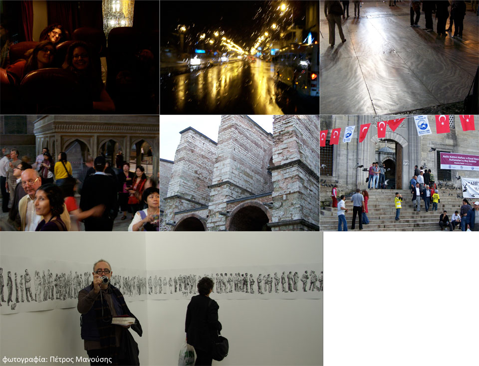 ENGLISH At 23.00 h. the road to the East is extending as far as the shattered bus lights stop in the constand heavy rain. The road is appearing and dissolving in the night, holding the certainty of reality, connecting it with the series of calm dialogues inside this metallic arc. At 01.00 h. the yellow lighted nodes attract the nest-vehicle off its cource, directing it to familiar geographies, to promices which are about to be fullfiled in the dawn. At 04.00 h. we have all accept that the crossing through the dark night have been already happend. From the familiar and stable area of events, through sleep and wakefulness, to the area of possibilities and assumptions. At 09.30 h. we are attempting to comprehent the multiple space-time entities on the palimpsest of a city. The substratum of different civilizations, nationalities and religions.