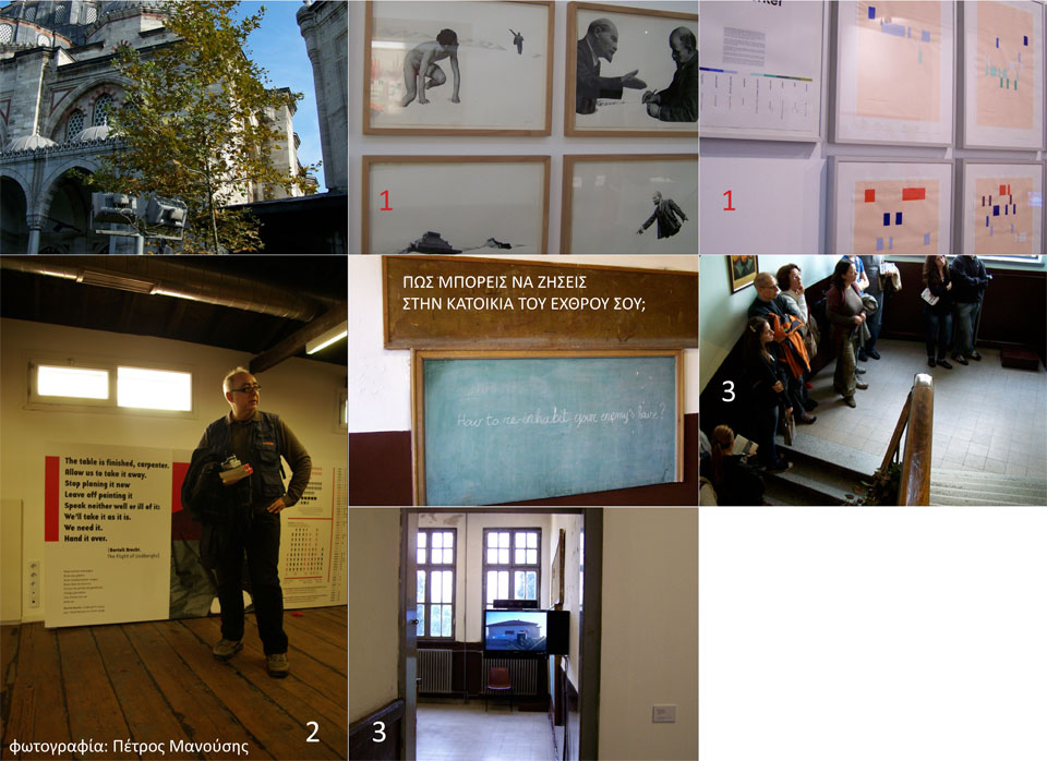 * Αναφορά στα τρία κύρια κτίρια όπου εκτέθηκαν τα έργα των καλλιτεχνών της μπιενάλε τεχνών της Ιστανμπούλ. 2009.