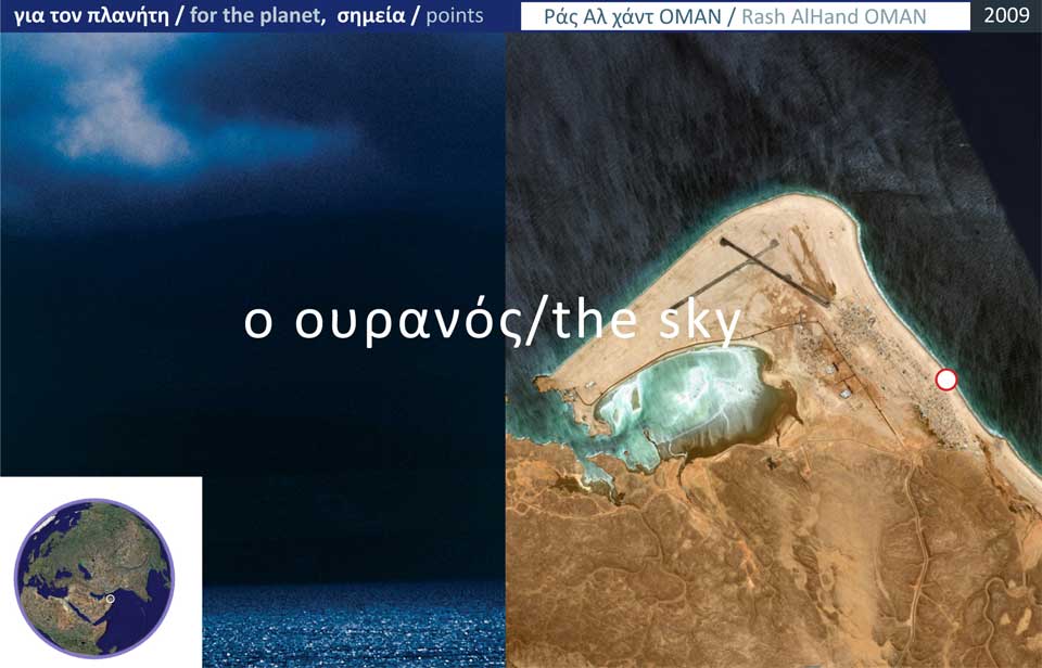 There is an exercise for those who travel, scouting the landscapes of the planet. There is a moment when they stop in a place on α shore of a far away unknown sea. Put their belongings on the ground. Sit down. The wind is strong but ...it is sertain that at sunset there will be someone to quide them in an open house. Nonetheless, in a while ...as they stand sitting in the center, the point from where self extend toward kosmos ...to the planet ...they should count all scuttered thoughts together with the qualities of the vast space. Usually, the primar thoughts that loose power and sink into oblivion are those connected to the value of objects. The body shakes ...the thoughts eject to the horizon. The power of the cities cannot draw them back.