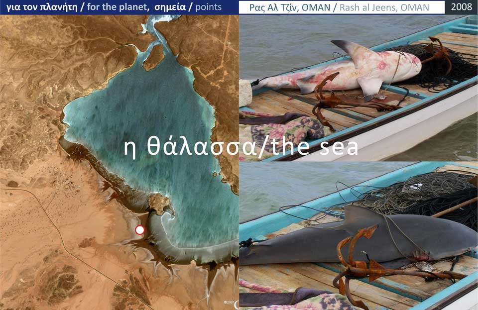 "...Πίσω από τον ψηλό αμμώδη λόφο βρισκόταν η παραλία και οι δύο ψαρόβαρκες. Στο κατάστρωμα είδαμε το άψυχο σώμα του ψαριού..." Ζούμε υπο το βάρος ενός συστήματος γνώσης, ενός αξιακού πεδίου τακτοποιημένου έτσι ώστε να συγκρατεί τις ψηφίδες ενός είδους πολιτισμού. Ζούμε υπομένοντας, μιμούμενοι προθέσεις και σκοπούς που επιβλήθηκαν, ως τμήματα μιας ιδεώδους εκπαίδευσης. Τι αντικρύσαμε μπροστά μας; Ένα σύμβολο της ιδέας για τον κίνδυνο; Τη σκιά που συνοδεύει τους βαθύτερους φόβους μας για τη ζωή στη θάλασσα; Μια λαμπρή λεπτομέρεια της εξέλιξης στον πλανήτη; Ένα ορισμό και ενα δείγμα για τις πειθαρχίες στην αναζήτηση της τροφής;