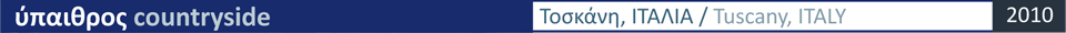 The smooth hills in Tuscany, Italy, the clusters of trees, the long rows of cypresses, the walls and the high, bulky buildings, the farmsteads, the warehouses and the shel- ters define a type of behavior, the introductory technique of landscape reading. All these elements calm down the anxiety, strengthen ...launch enthusiasm, accompany self to the long paths towards the places where horizon is go- ing to be reborn, draw the hiker to the limits ...to where night is coming to fall. The course is extending towards any direction, over the thick grass, through the clusters of fruit trees, the abandoned and the new pathways, by the ruins of small structures made to serve residency during the periods of harvesting, under the shadow of the big remote trees, over the deep ditches and the trunks bridging the gap.